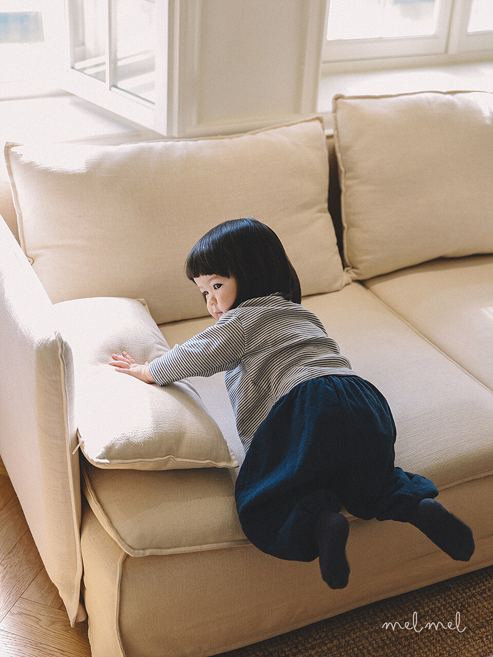 멜멜의 모든 제품은 작업 전 후 덤블 워싱 가공으로