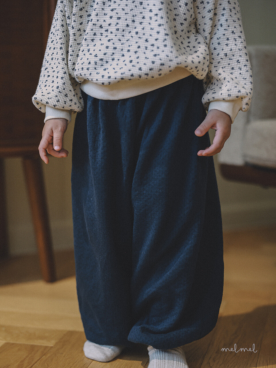 부드러운 이중지 아일렛 원단으로 제작된 블루머 팬츠입니다.