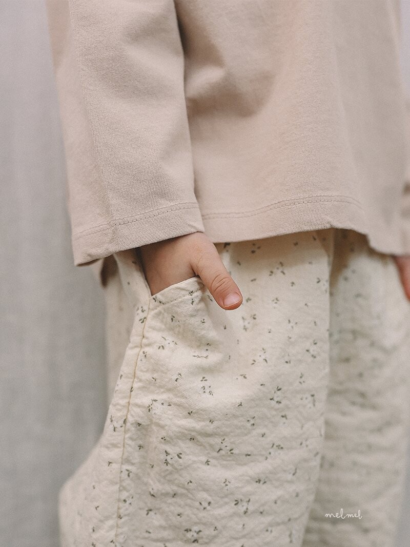 잔잔한 프린트가 더해진 편안한 팬츠.