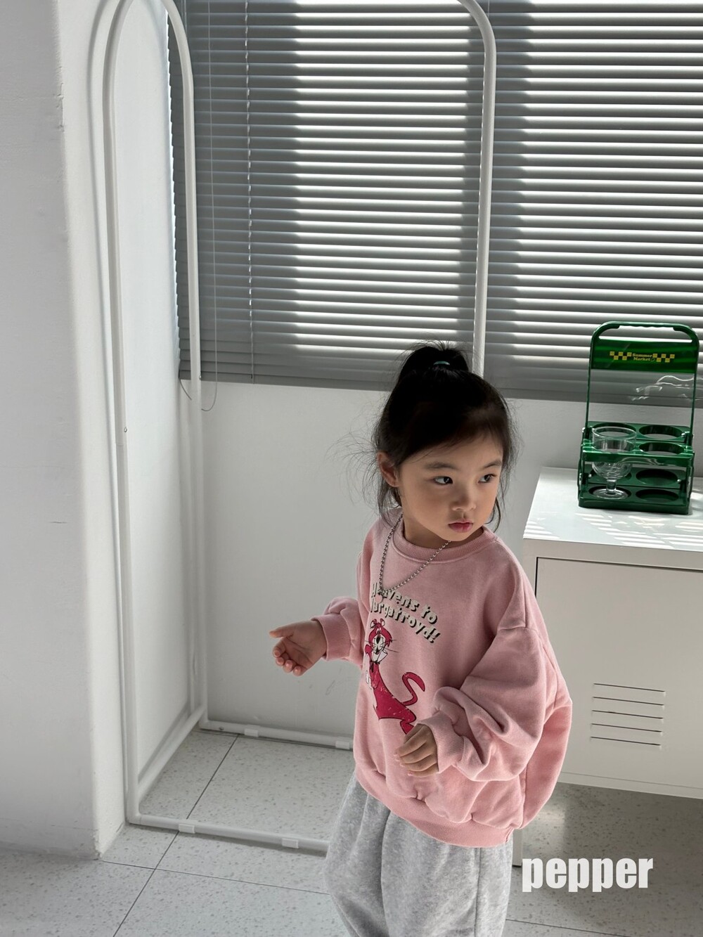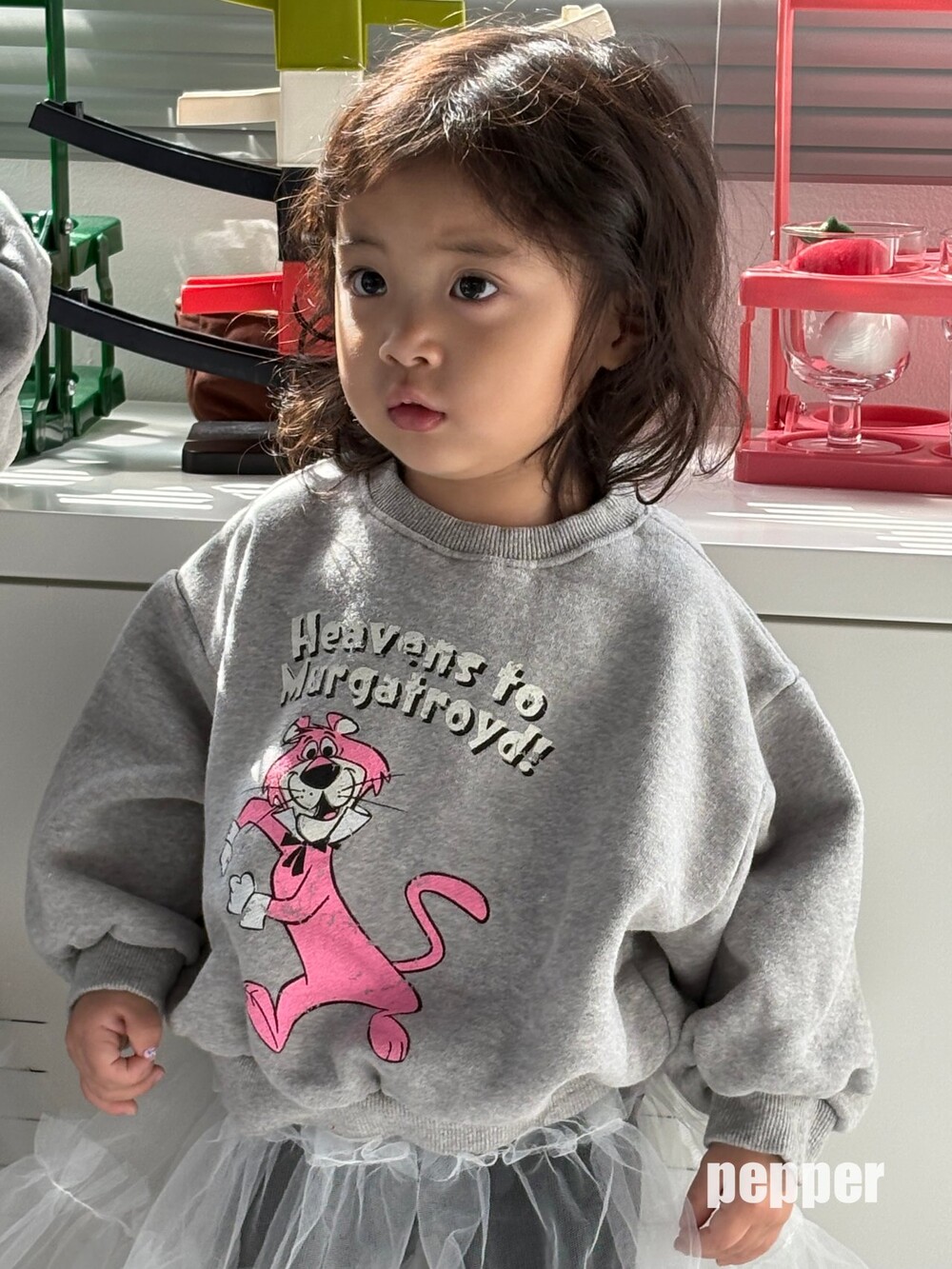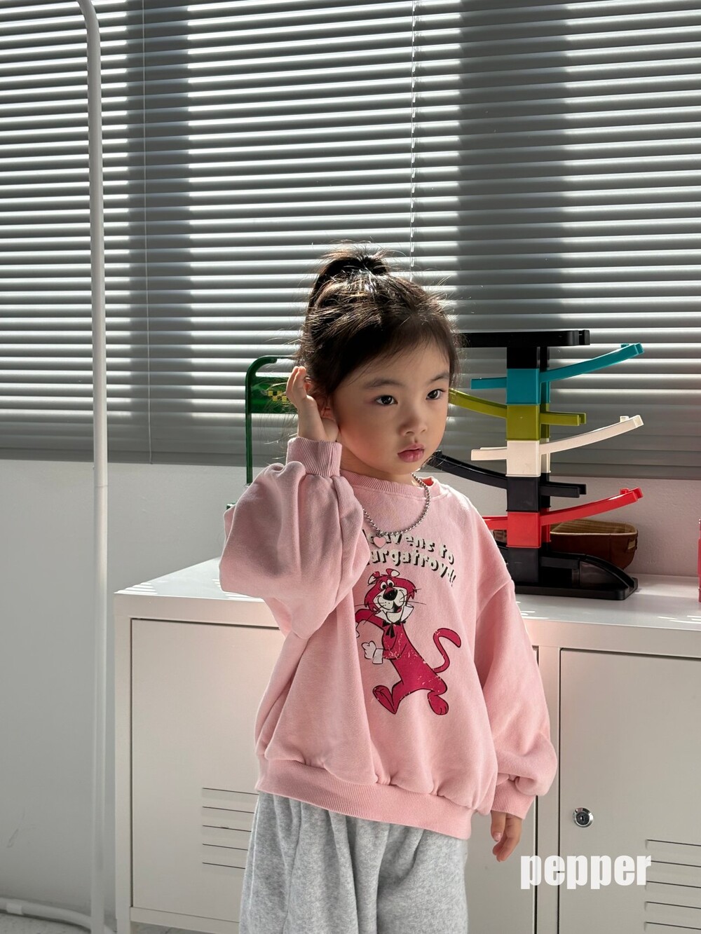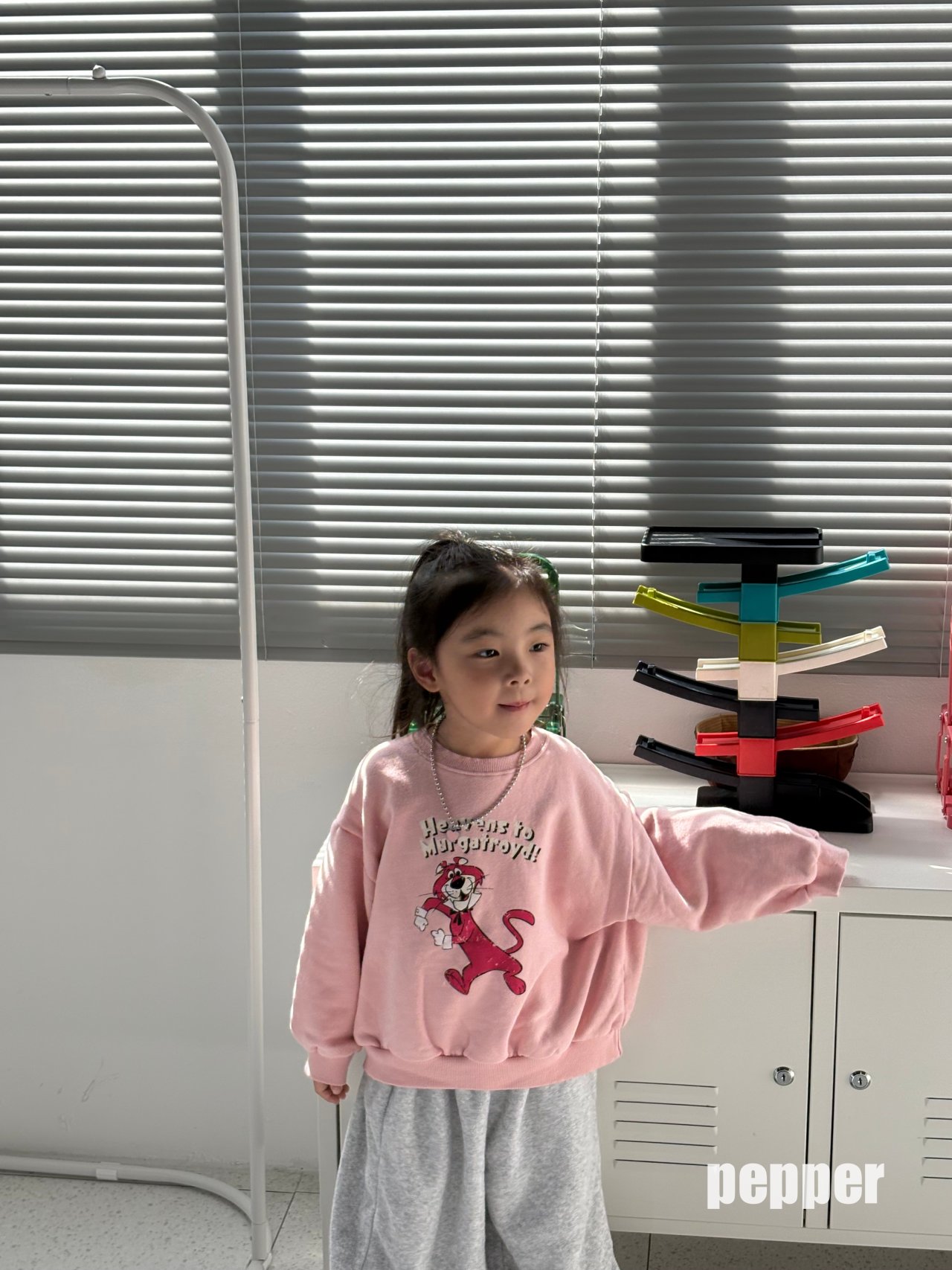 귀여운 핑크팬더나염이 포인트로 이번 겨울 맨투맨중